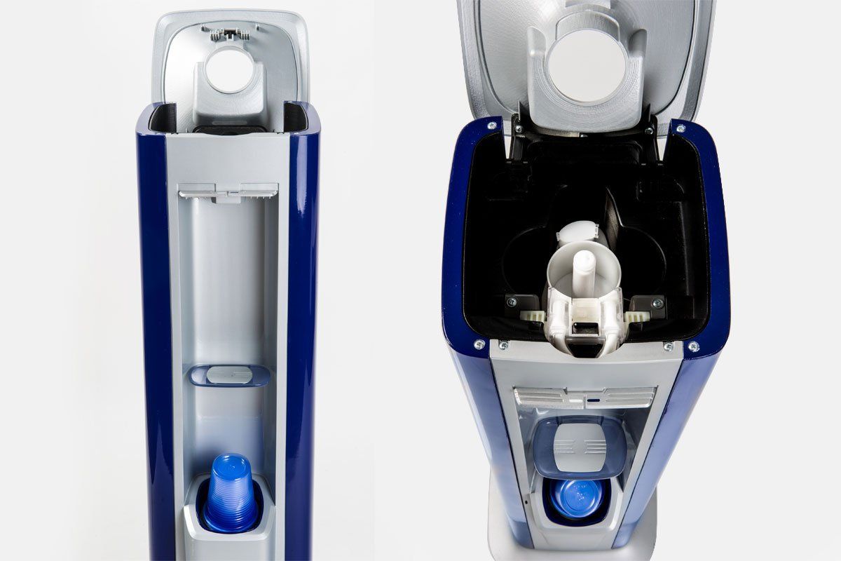 L’ultima tecnologia Ebac è il sistema brevettato WaterTrail™ che desinfetta e igienizza in meno di 60 secondi, il collettore anti-perdita che garantisce che le gocce provenienti dai tappi delle bottiglie non contaminino il serbatoio dell’acqua e non causino perdite.