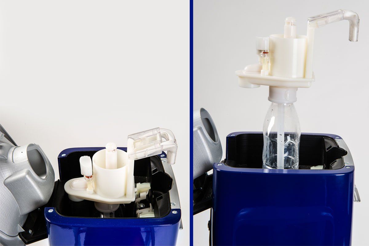 Il sistema di sanificazione è igienico al 100% perché prevede la sostituzione del kit interno monouso. Tutte le parti a contatto con l’acqua vengono semplicemente sostituite, non pulite, una operazione che richiede pochi secondi!